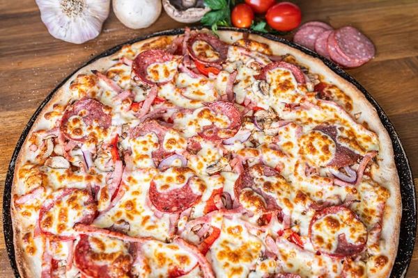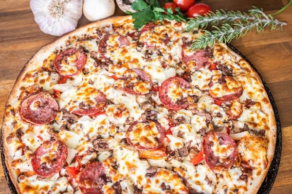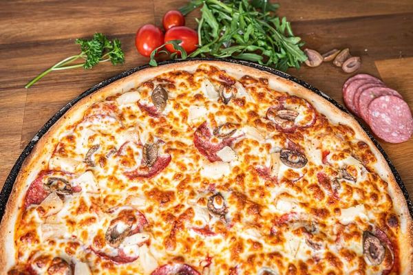 Tomato Base, Ham, Pepperoni, Salami, Capsicum, Mushroom, Onion and Mozzarella.