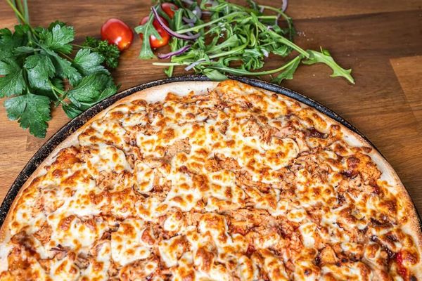 Tomato and BBQ Base, Roasted Chicken and Mozzarella.