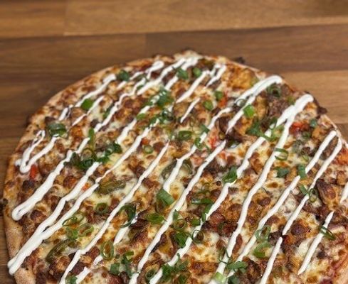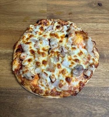 Roasted Chicken, Sweet Chilli Sauce Base, Mozzarella, Bacon and Parmesan Cheese.