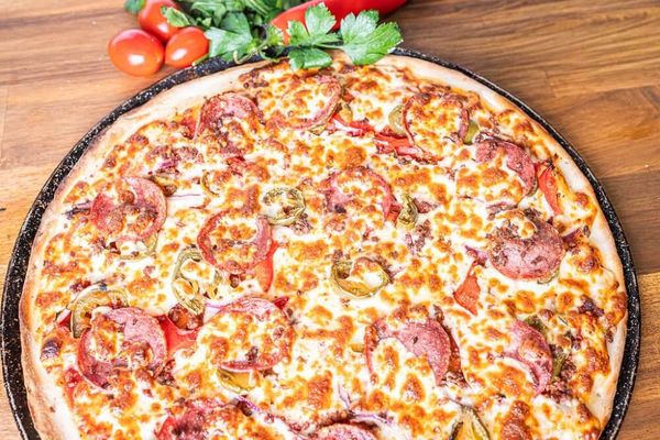 Tomato Base, Beef, Pepperoni, Salami, Capsicum, Jalapenos, Onion, Mozzarella and Chilli Flakes.