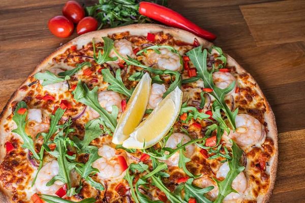 Tomato Base, Onion, Mozzarella, Green Prawns, Fresh Chilli, Garlic, Lemon and Rocket.
