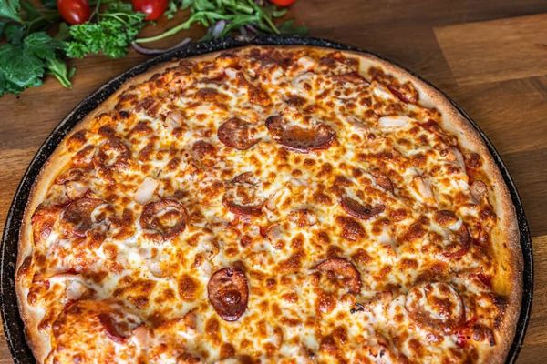 Tomato and Peri Peri Base, Chorizo, Roasted Chicken and Mozzarella.